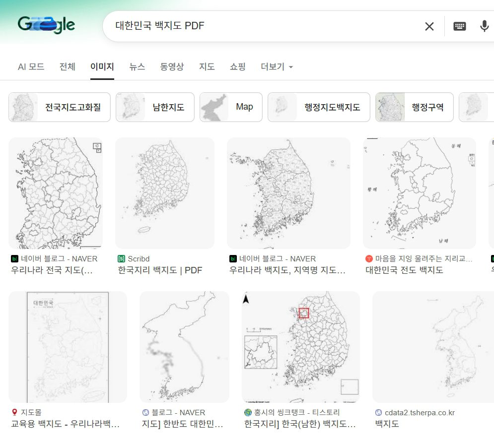 검색창에 ‘전국 지도 PNG 다운로드’, ‘대한민국 백지도 PDF’처럼 입력하면 고화질로 정리된 이미지를 무료로 내려받을 수 있는 페이지들이 여럿 뜹니다. 특히 PNG 파일은 파워포인트(PPT)나 엑셀에도 삽입이 쉬워 활용도가 높습니다.