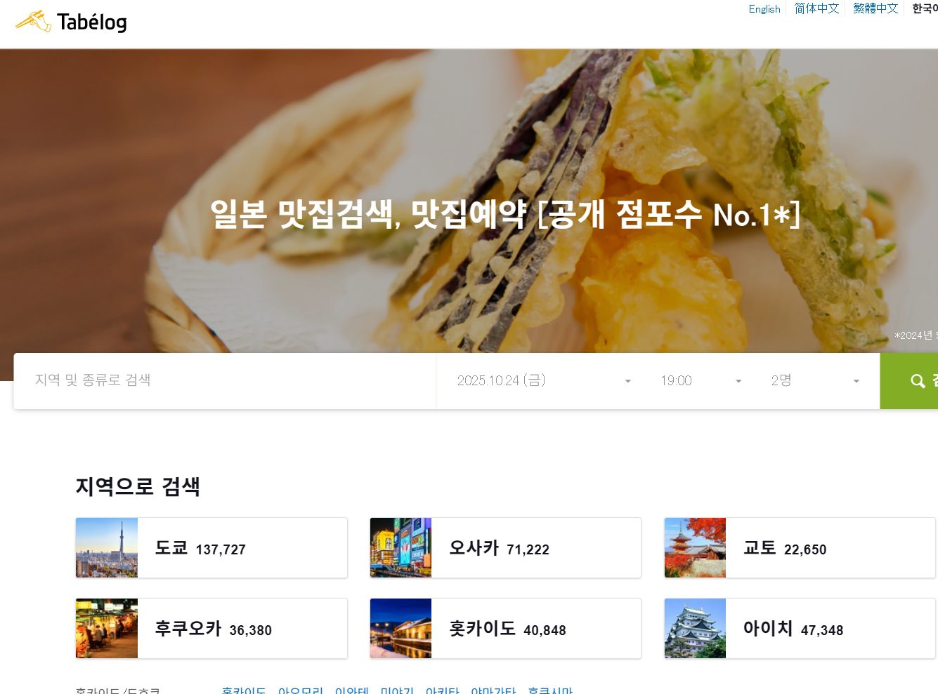 타베로그는 공식 웹사이트를 통해 한국어 서비스를 지원합니다.