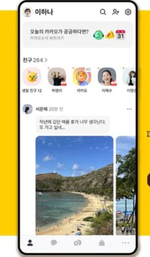 카카오톡 친구탭 피드는 간단히 말해 친구들의 최근 활동이 타임라인처럼 흘러나오는 공간입니다.