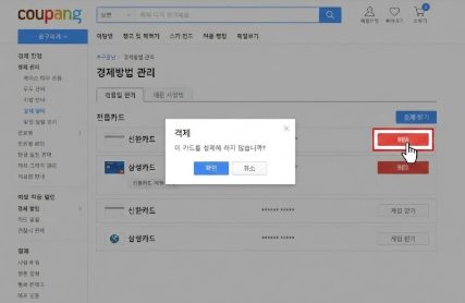 쿠팡 앱에서 카드 삭제하는 가장 빠른 방법