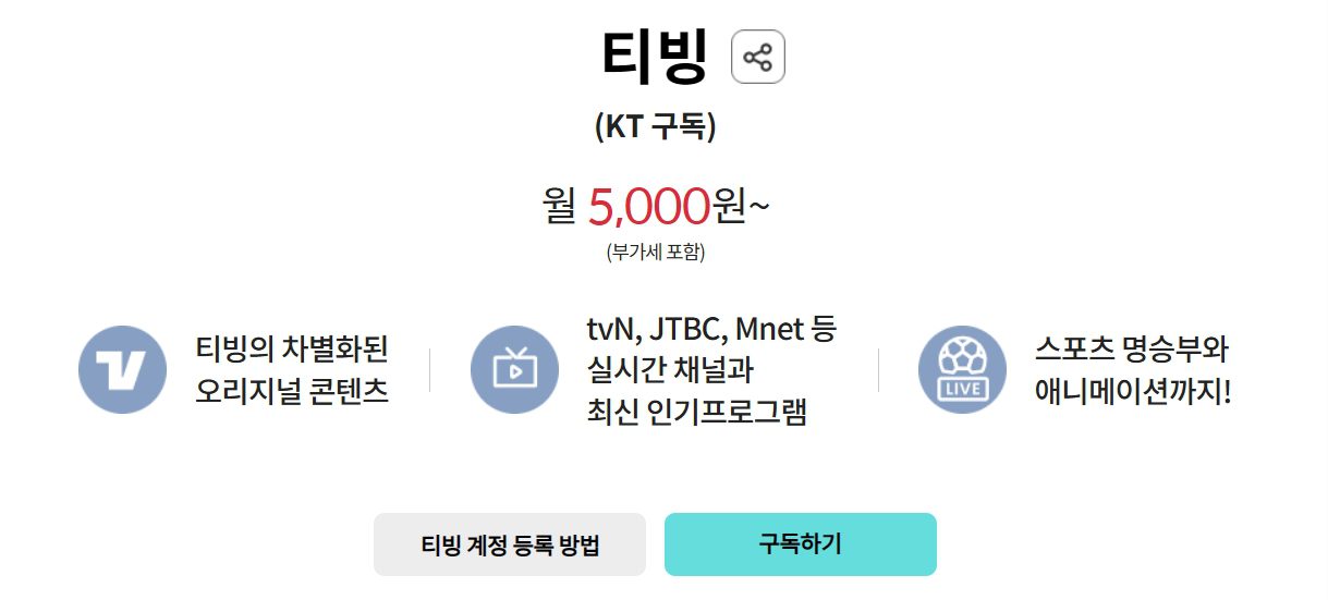 KT 고객센터 앱(마이KT)나 올레닷컴에서 로그인한 뒤 부가서비스 메뉴로 들어가 콘텐츠 이용권 → 티빙 선택만 해주면 신청할 수 있고, 본인 티빙 계정과 연동만 하면 바로 무료 이용이 가능해요.